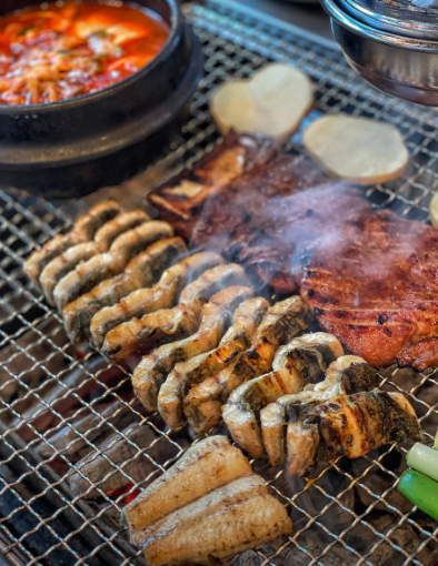 천마산강장어의 노하우가 집약된 주요 메뉴 구성입니다. 장어와 돼지갈비를 동시에 즐길 수 있어 메뉴 선택의 고민을 덜어줍니다.